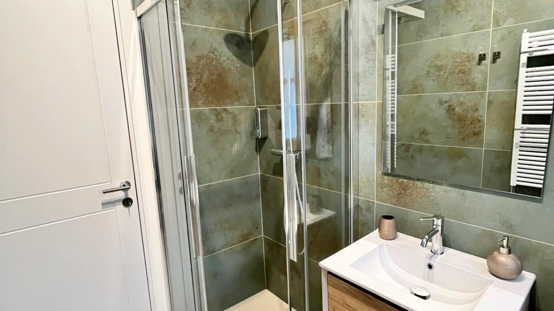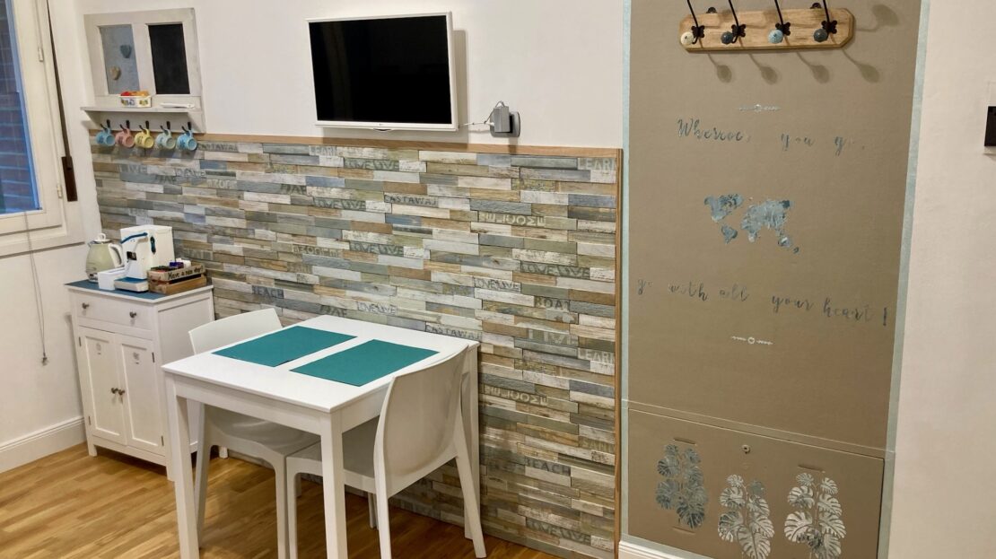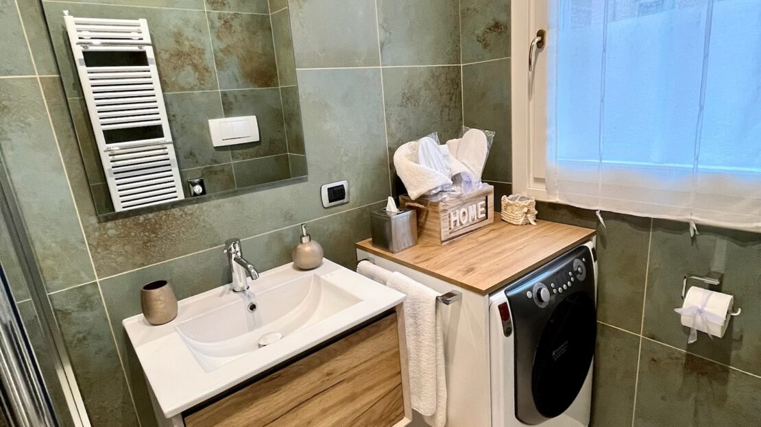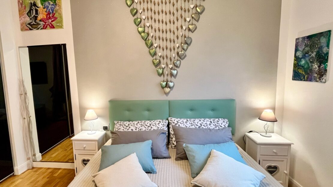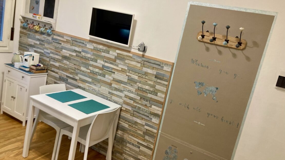 L’appartamento è dotato di aria condizionata e pompa di calore, garantendo un clima ideale in ogni stagione. La zona giorno è luminosa e include una cucina completamente attrezzata, mentre la camera matrimoniale è spaziosa e confortevole. Il bagno moderno è dotato di una pratica doccia. Per chi lavora da casa, è presente anche una zona studio funzionale e ben connessa, con smart TV e fibra veloce.