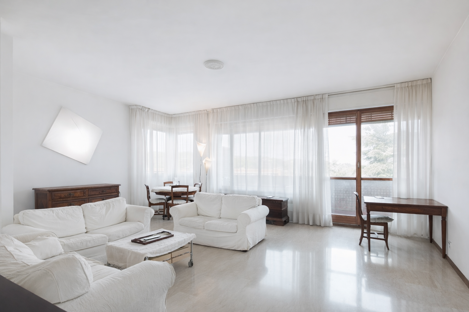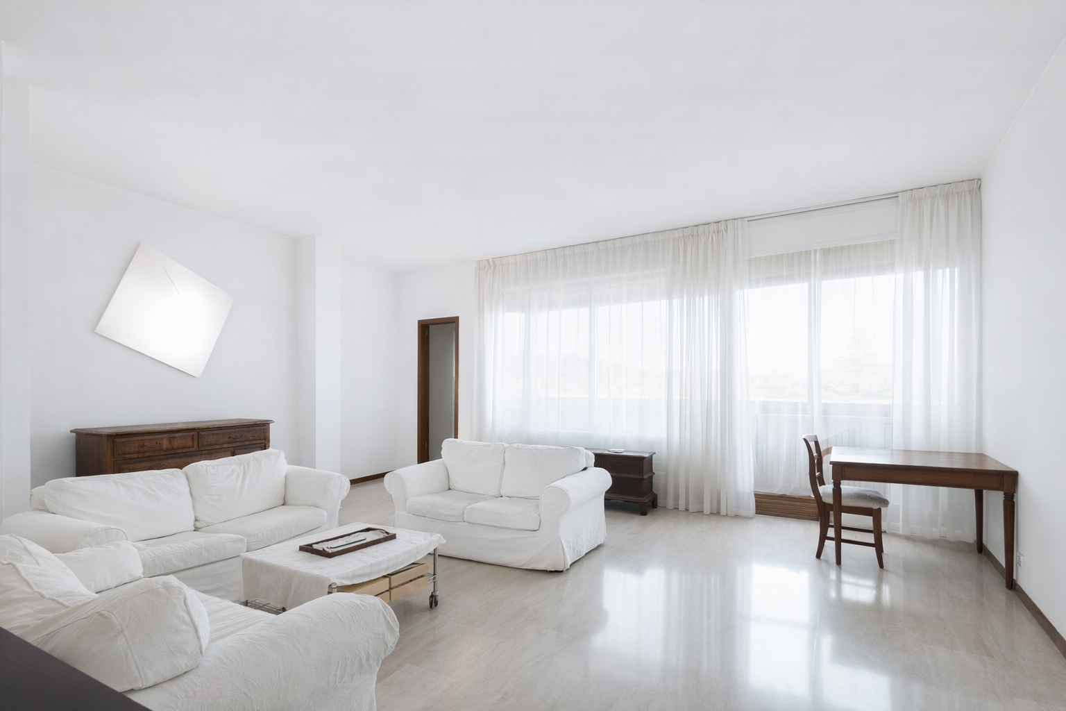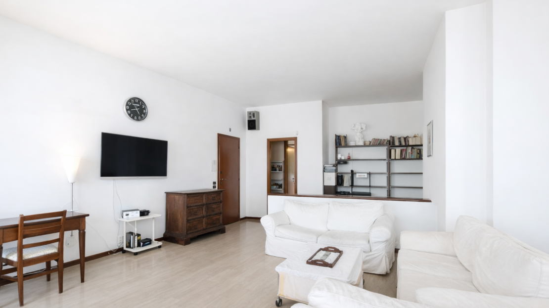 La zona living open space, illuminata da un’ampia vetrata, si apre su un balcone esclusivo con vista aperta e luminosa. La cucina separata ed abitabile è perfetta per chi ama cucinare e ricevere ospiti. L’appartamento dispone di 2 bagni moderni e 3 camere matrimoniali spaziose.