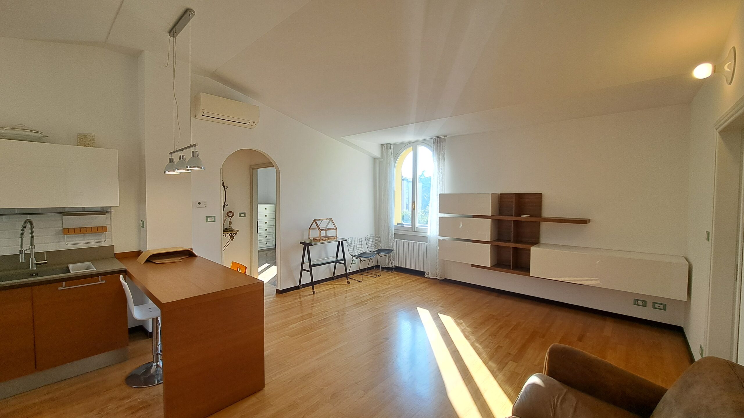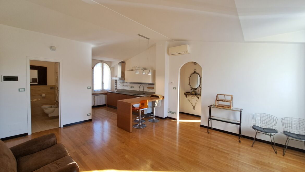 Situato al secondo e ultimo piano di un’elegante palazzina servita da ascensore, l’appartamento si apre su un’ampia e luminosa zona giorno con doppia esposizione est/ovest. Gli ambienti risultano accoglienti e contemporanei, anche grazie alla cucina a vista perfettamente integrata. Completa la zona giorno un pratico bagno di servizio con lavanderia.