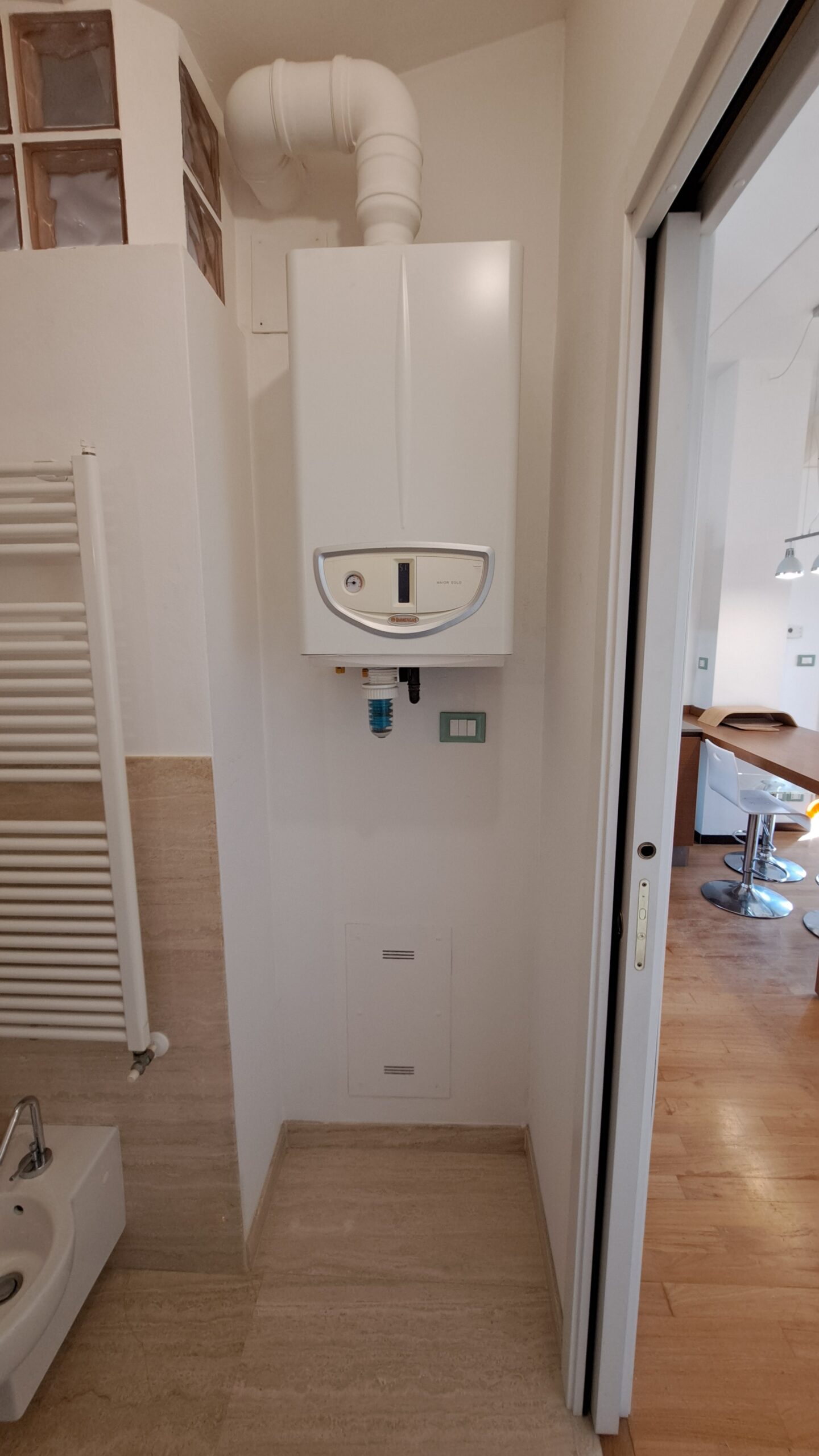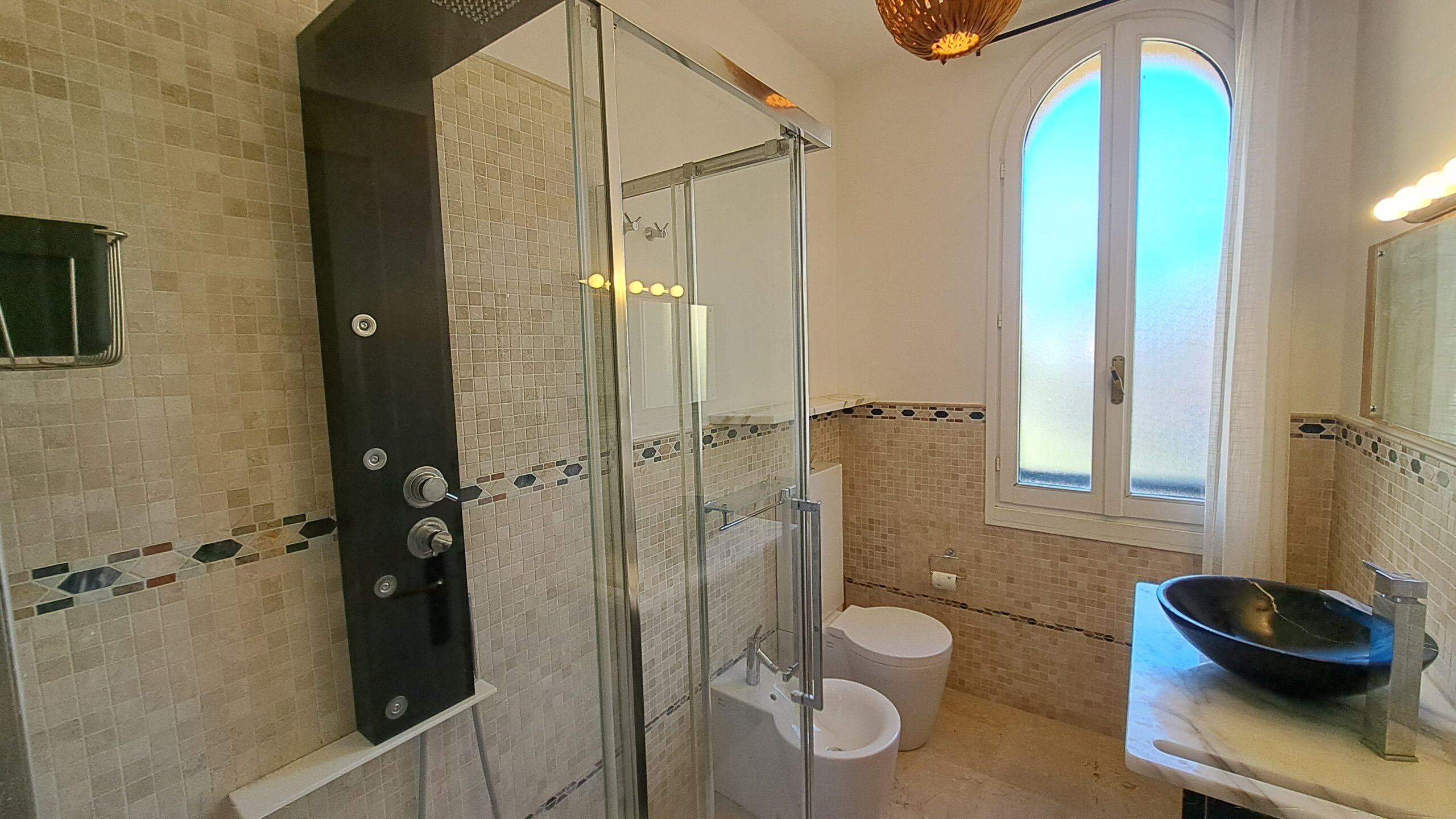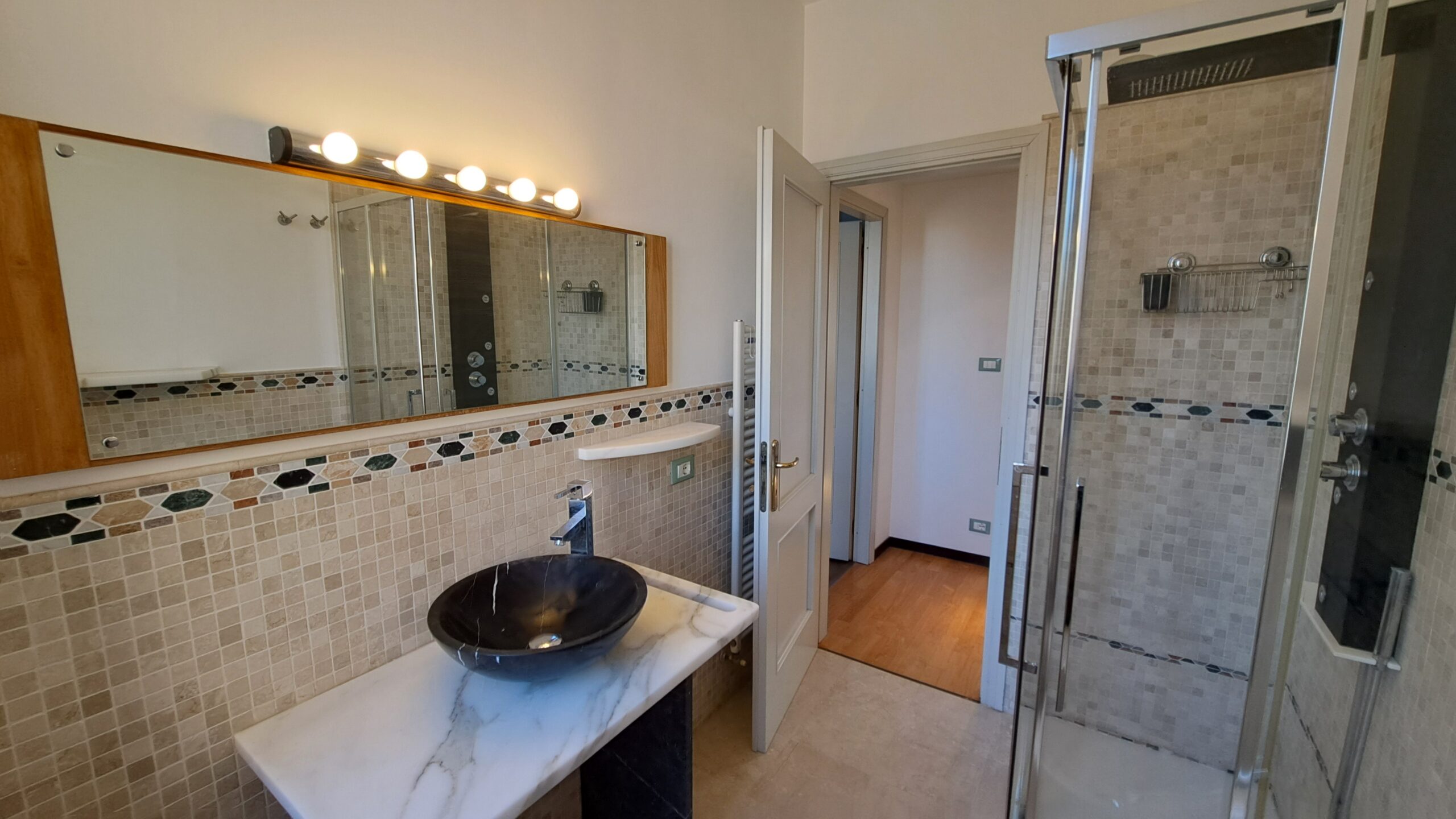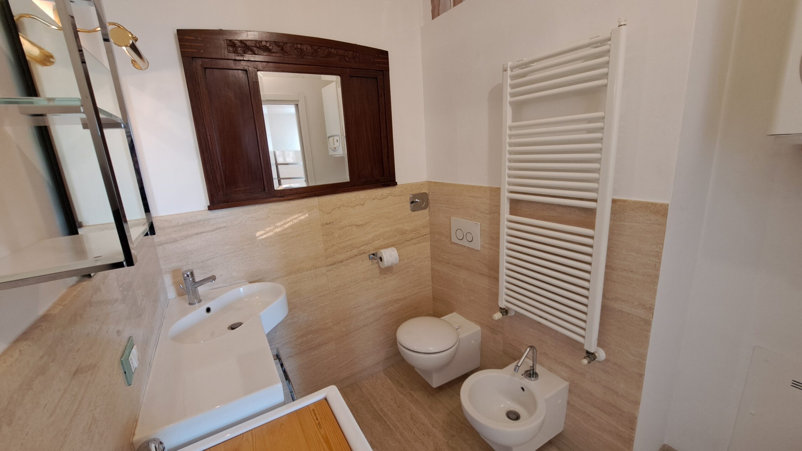 L’immobile è rifinito con parquet in tutti gli ambienti, bagni in marmo, aria condizionata nella zona giorno e nella camera matrimoniale, riscaldamento autonomo con caldaia a condensazione, infissi in legno con doppio vetro e porta blindata.