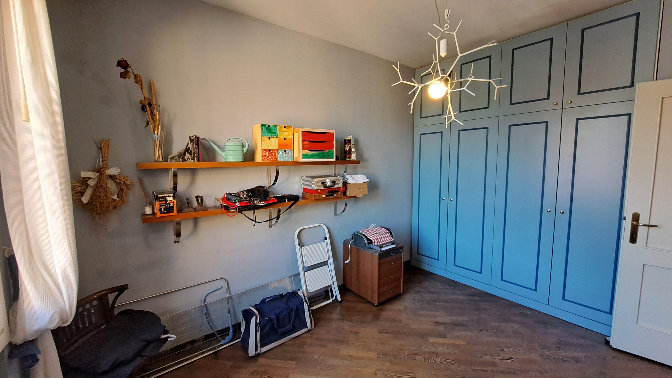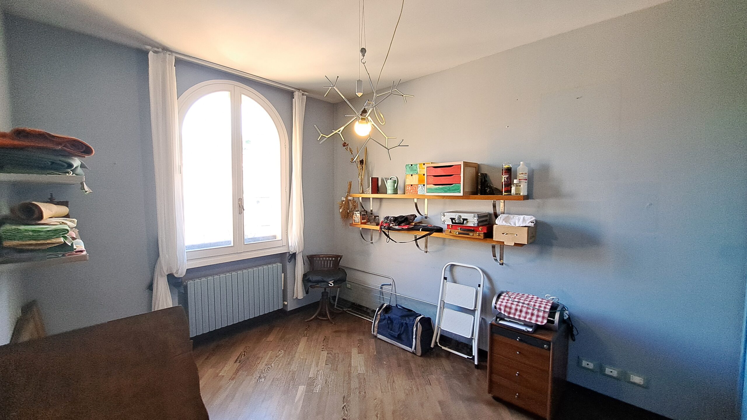La zona notte offre una spaziosa camera matrimoniale, una grande camera singola e un piacevole bagno finestrato. A queste si aggiunge una terza camera matrimoniale, separata, estremamente versatile: ideale come studio, area relax o stanza per ospiti. Qui si trova anche lo storico balconcino originale della funivia, un dettaglio unico e ricco di fascino.